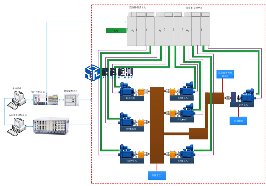 The high-speed transmission system test system can be composed of multiple drive motors and load motors according to the needs of the test product to be tested, and the shaft system can also be designed according to real-time requirements.