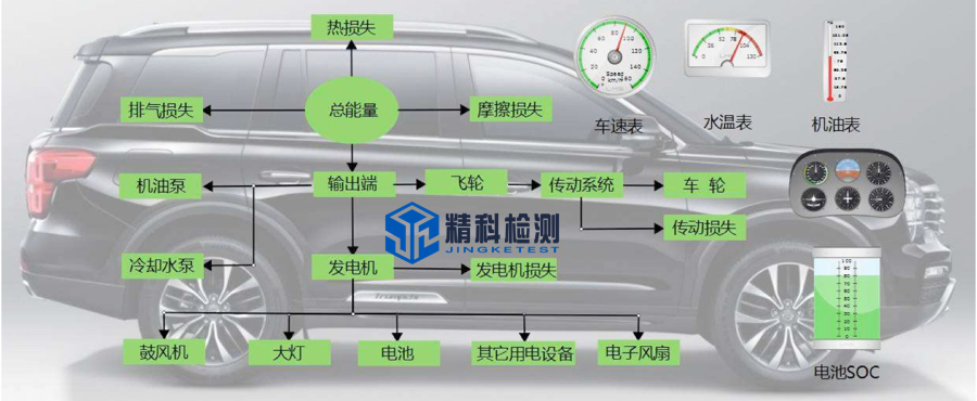The key points of the vehicle energy flow test are the accuracy of the measurement and the synchronization of the measurement of different energy-consuming components, as well as the authenticity of the vehicle condition simulation.